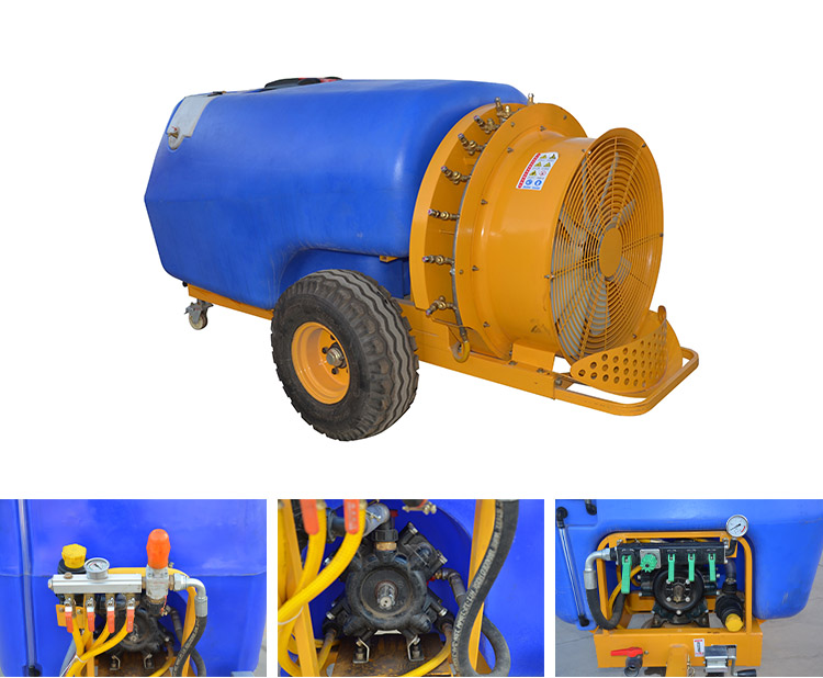 Kestävä rakenne: AirBlast Trailed Sprayerin putket on valmistettu ruostetta vastustavista materiaaleista. Nestepumppu on kaksisylinterinen kalvopumppu. Tämä muotoilu pitää koneen toiminnassa pitkään. Suihkuvarsi voi taittua ja palata alkuperäiselle paikalleen automaattisesti. Tämä estää esteiden aiheuttamat vauriot työmaalla. Se myös pidentää laitteiden käyttöikää.