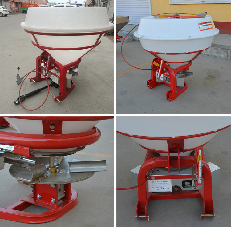 Sähkötulo: Yhdistetty lannoitteen leviämiskoneen vaihdelaatikkoon traktorin takaosan läpäisyakselin läpi, se ajaa ketjupyörän ryhmää kuljetuskaulan ja lannoitteiden levittävän levyn kiertämiseksi synkronisesti.