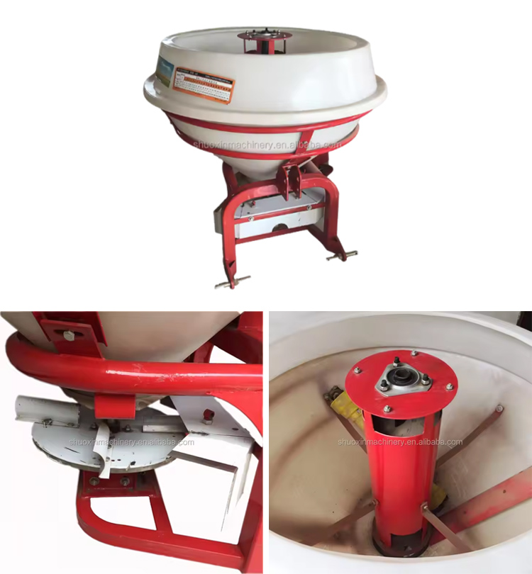 Kuintraktoriin asennetut lannoitekappaleetSiirtyy eteenpäin, levitin sisällä oleva kuljetin alkaa kuljettaa lannoitetta lannoitekalvosta levitinlokeroon tai levitin. Sitten astia pyörii tai lannoitteen levitin ravistaa levittämään lannoitteen tasaisesti kentän poikki. Viljelijät voivat hallita lannoitteen määrää ja epätasaisuuden astetta säätämällä siementälaitteen pieniä asetuksia, kuten lannoitteiden toimituksen nopeutta ja levyn pyörimisnopeutta.